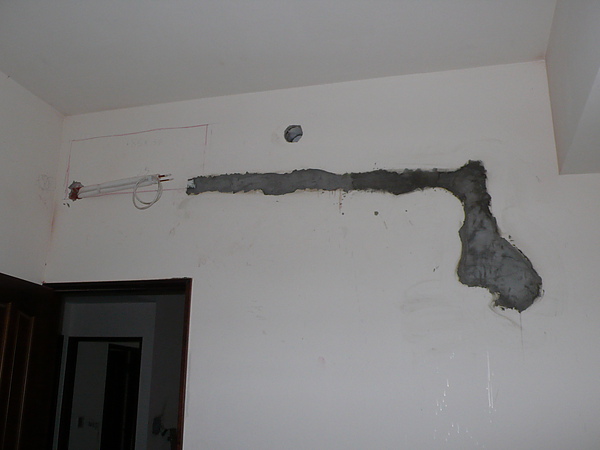 原本屋主安裝冷氣的位置,幾乎都換掉了,所以牆面上看起來坑坑洞洞的。